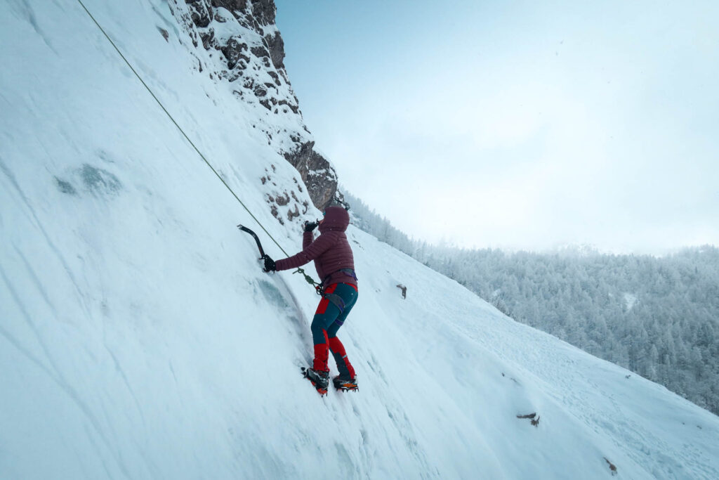 You get an ice axe in your hand, crampons on your feet, a helmet on your head, a climbing harness and rope around your waist, and then you're off to new adventures. Moving in the ice vertical can become your passion.