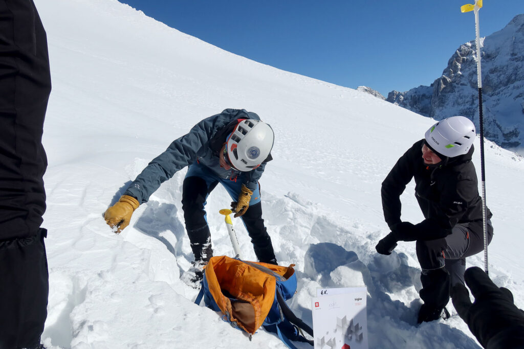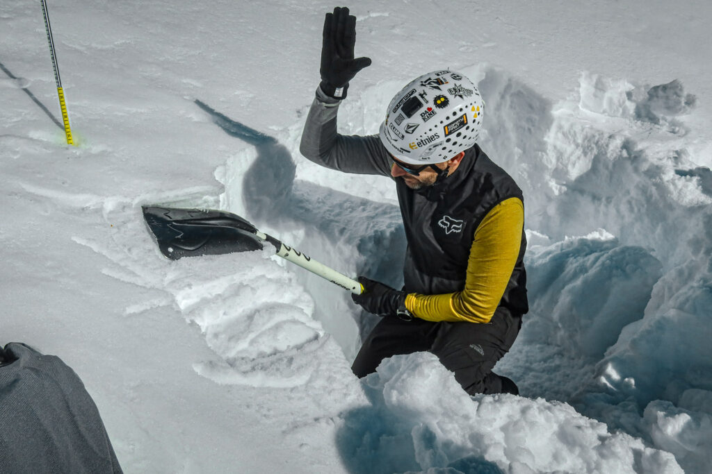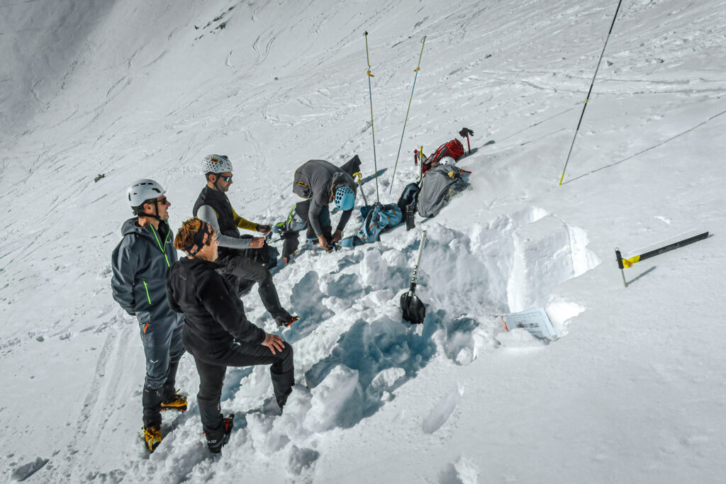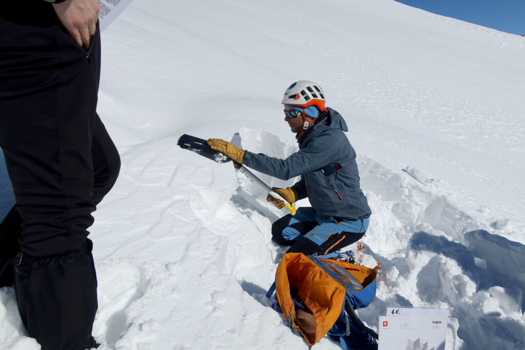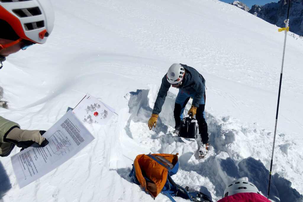 Prikaz profila snežne odeje na začetnem zimskem tečaju varno v gore