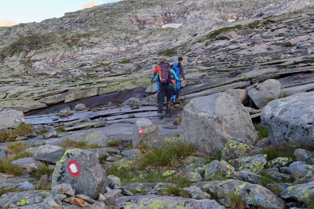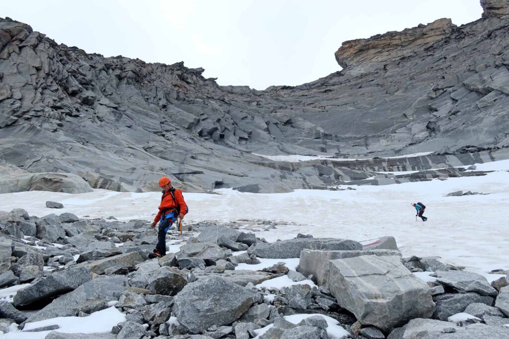 DAN 2: koča Giessener Hütte (2215 m) - začetek zahodnega grebena Detmolder Grat (2850 m) - Hochalmspitze (3360 m) - Steinerne Mandln (3158 m) - koča Giessener Hütte (2215 m) - parkirišče za kočo Giessener Hütte (1650 m)